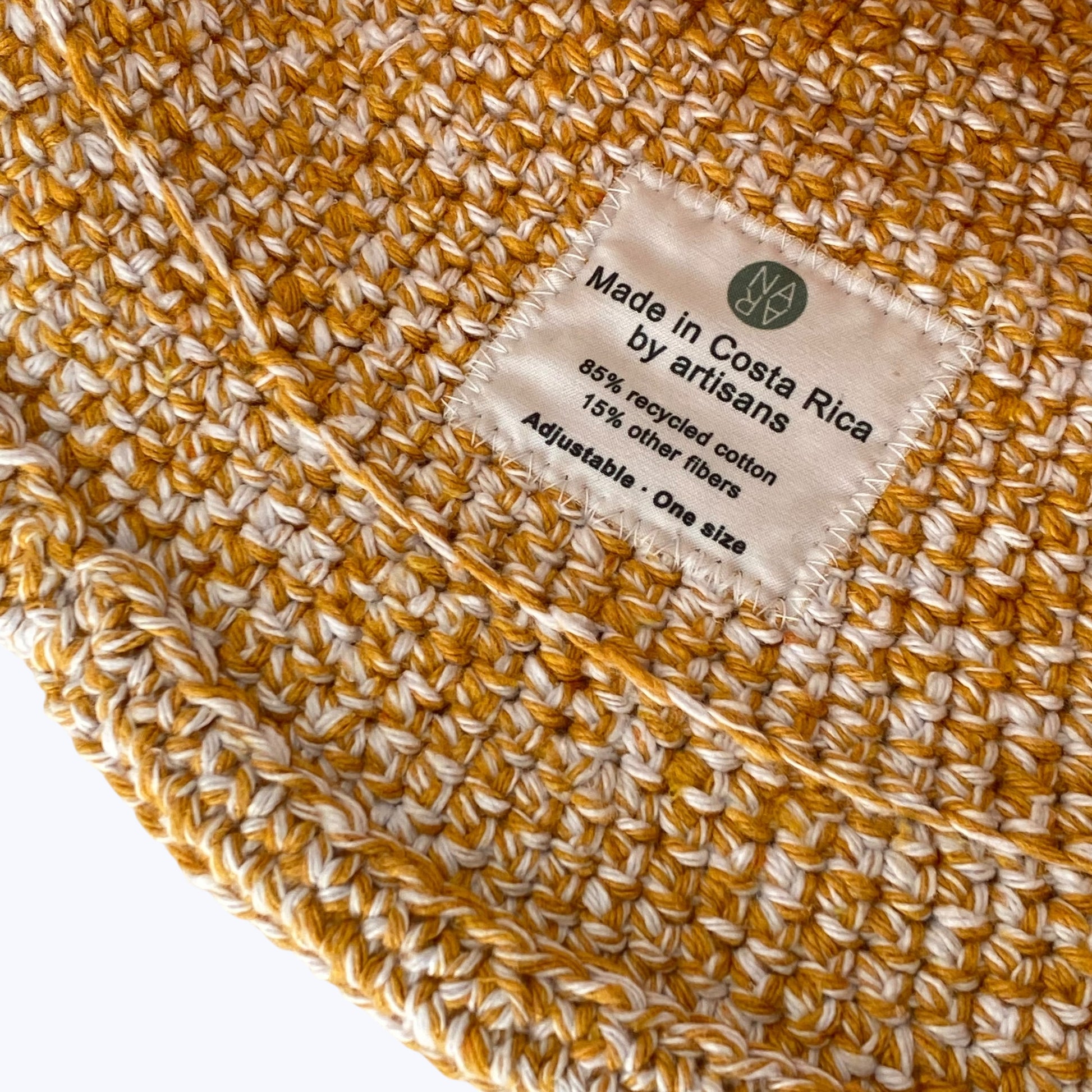 Sombrero estilo cloche de hilos de algodón reciclado.